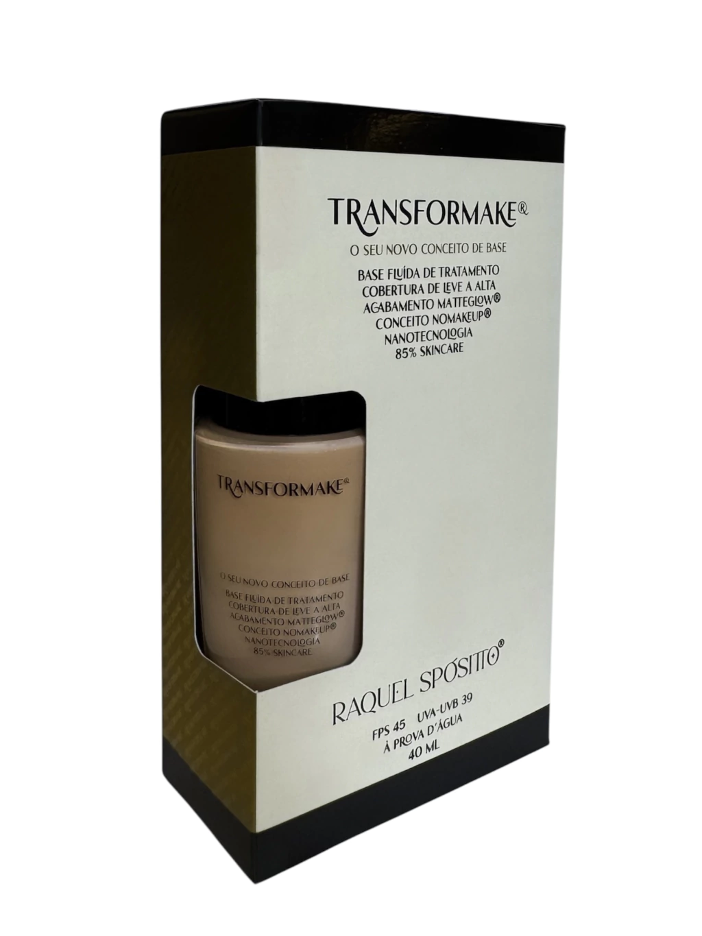 A Transformake ® é uma base fluída diária de tratamento e atendimento com nanotecnologia que possui uma fórmula inovadora com conceito diferenciado. Uma fórmula testada e estudada durante 2 anos para ser uma base que vai além de maquiagem, pois, atua também como skincare, sendo extremamente luxuosa por ser rica em 10 ativos potentes e tecnológicos que promovem benefícios profundos e regenerativos, que defendem a pele dos efeitos do tempo e de danos causados por agressores externos. Retexturiza, amenizando manchas, linhas, fotodano e hipercromias, promovendo luminosidade e mantendo a pele regenerada, livre de imperfeições, firme e saudável em qualquer idade, dia após dia.